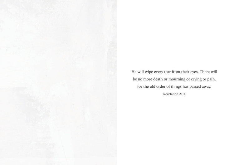 "He will wipe every tear from their eyes. There will be no more death or mourning or crying or pain, for the old order of thing has passed away." - Revelation 21:4