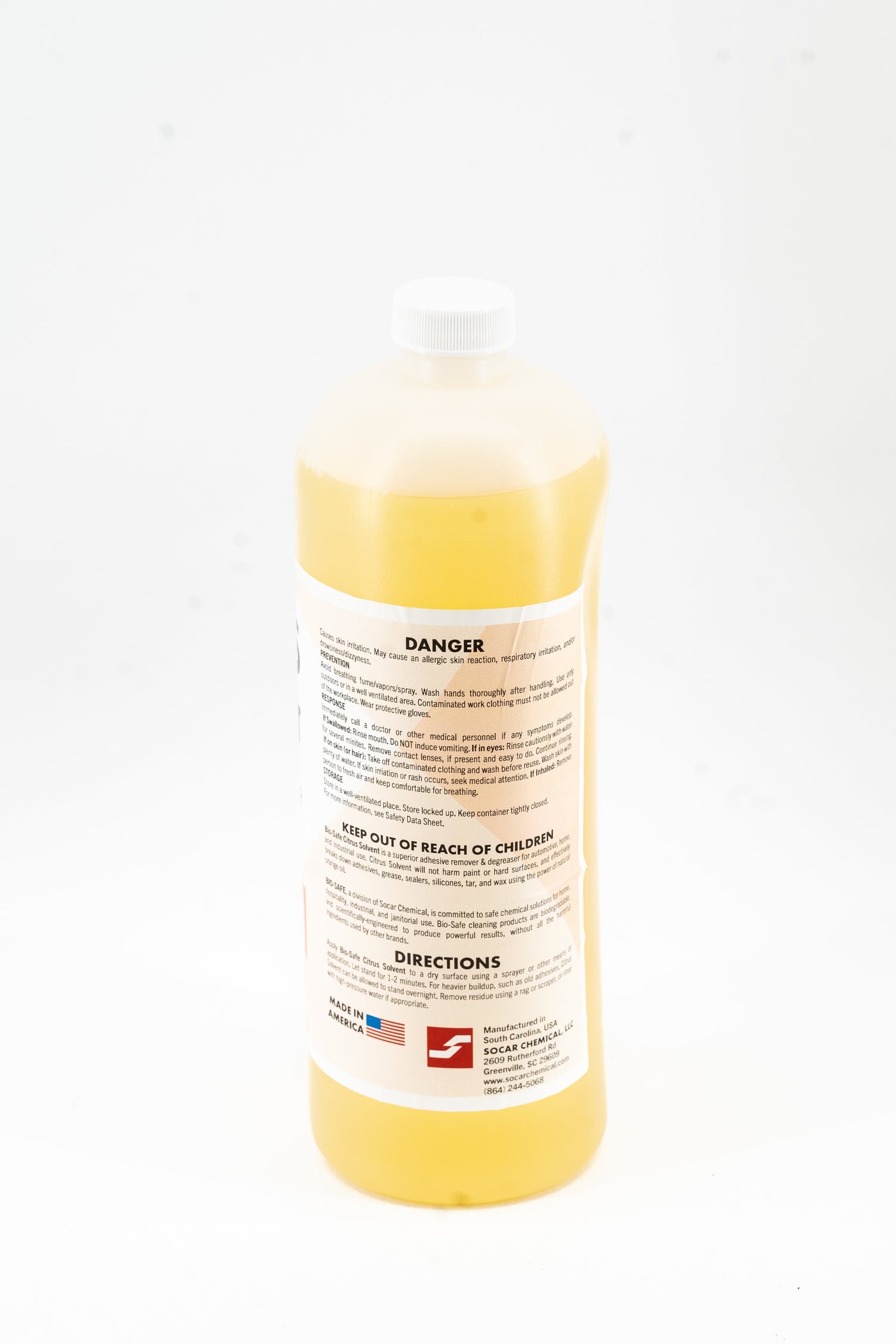Bio-Safe Citrus Solvent is a superior adhesive remover degreaser for automotive, home, and industrial use. Citrus solvent will not harm painted or hard surfaces, and effectively breaks down adhesives, grease, sealers, silicones, tar, and wax using the power of natural orange oil.