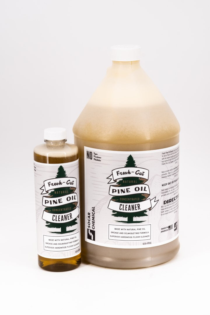 Fresh-Cut Pine Oil Cleaner from Socar Chemical is our original cleaner for wood floors and hard surfaces. Fresh Pine Oil Cleaner is made with the highest quality pure pine oil extract. Fresh Pine is an extra-strength concentrated all-purpose cleaner for use on all hard surfaces. Fresh Pine is gentle enough for all hard floors and surfaces.