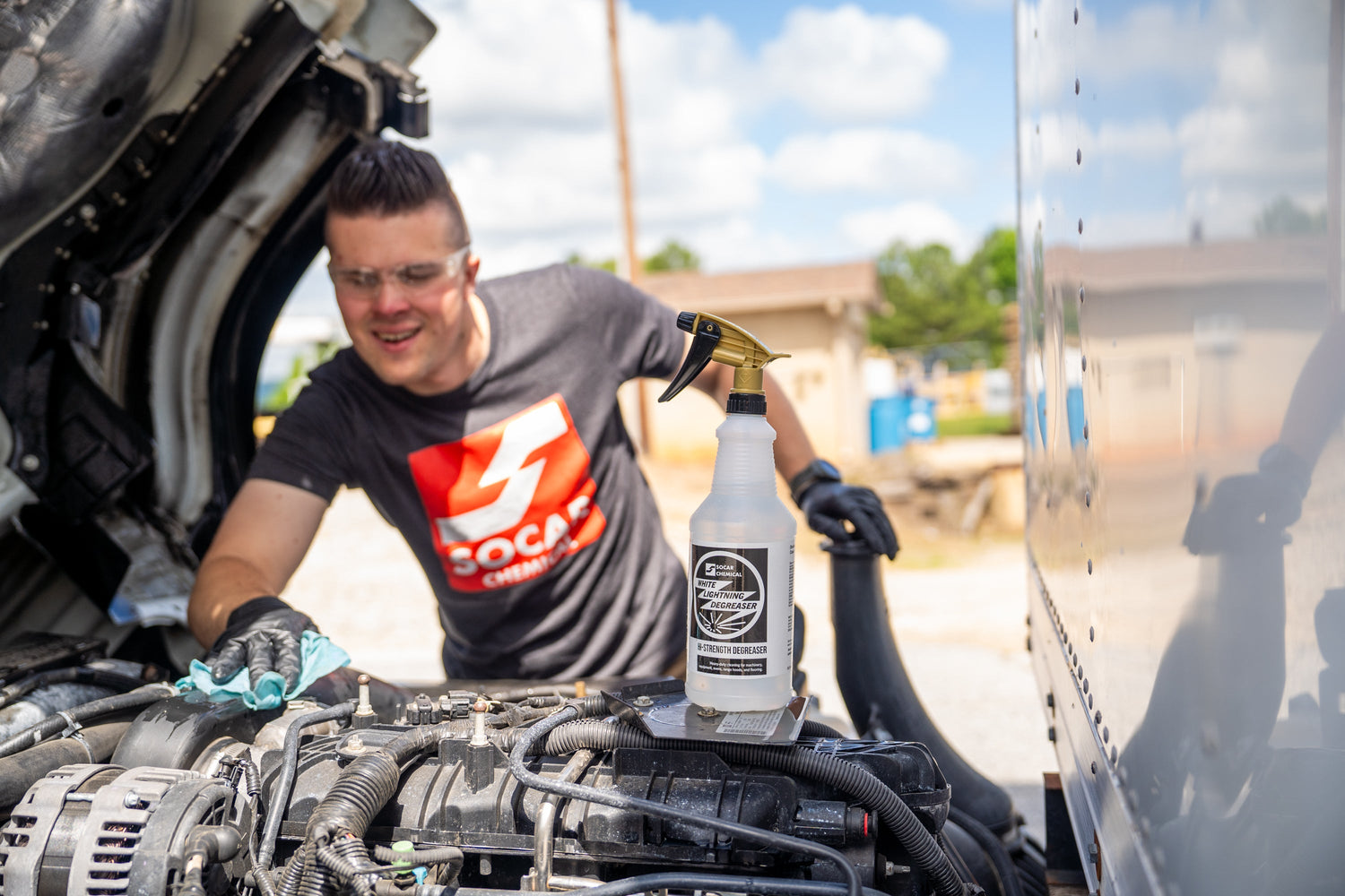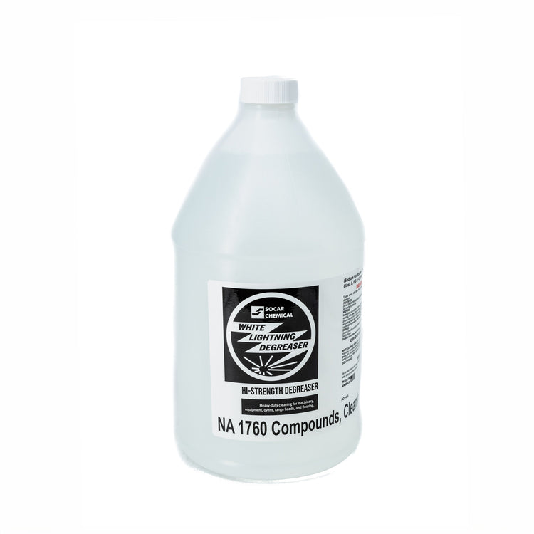 The most powerful of the SOCAR alkali degreaser formulas. White Lightning blasts its way through heavy grease, dirt, compacted oil, and the toughest floor wax.